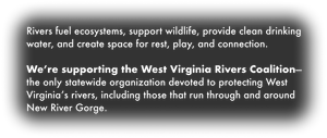 Rivers fuel ecosystems, support wildlife, provide clean drinking water, and create space for rest, play, and connection. Support the West Virginia Rivers Coalition with us and stand up for waterways everywhere. The WVRC leads with science, advocacy, and community action to keep this watershed thriving. Protecting these rivers is taking a stand for all rivers—because healthy waterways are the lifeblood of a healthy planet.