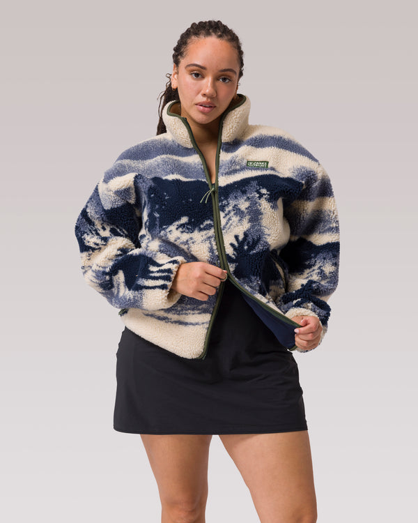 Enjoy nature from afar or wear it with our must-have high-pile fleece. This fleece features a high-pile shell with a recycled polyester mesh lining, YKK zippers for the front closure and pockets, and a spacious front nylon pocket for your phone or keys, complete with a carabiner clip holder. Zip up and take your favorite parts of nature with you!
