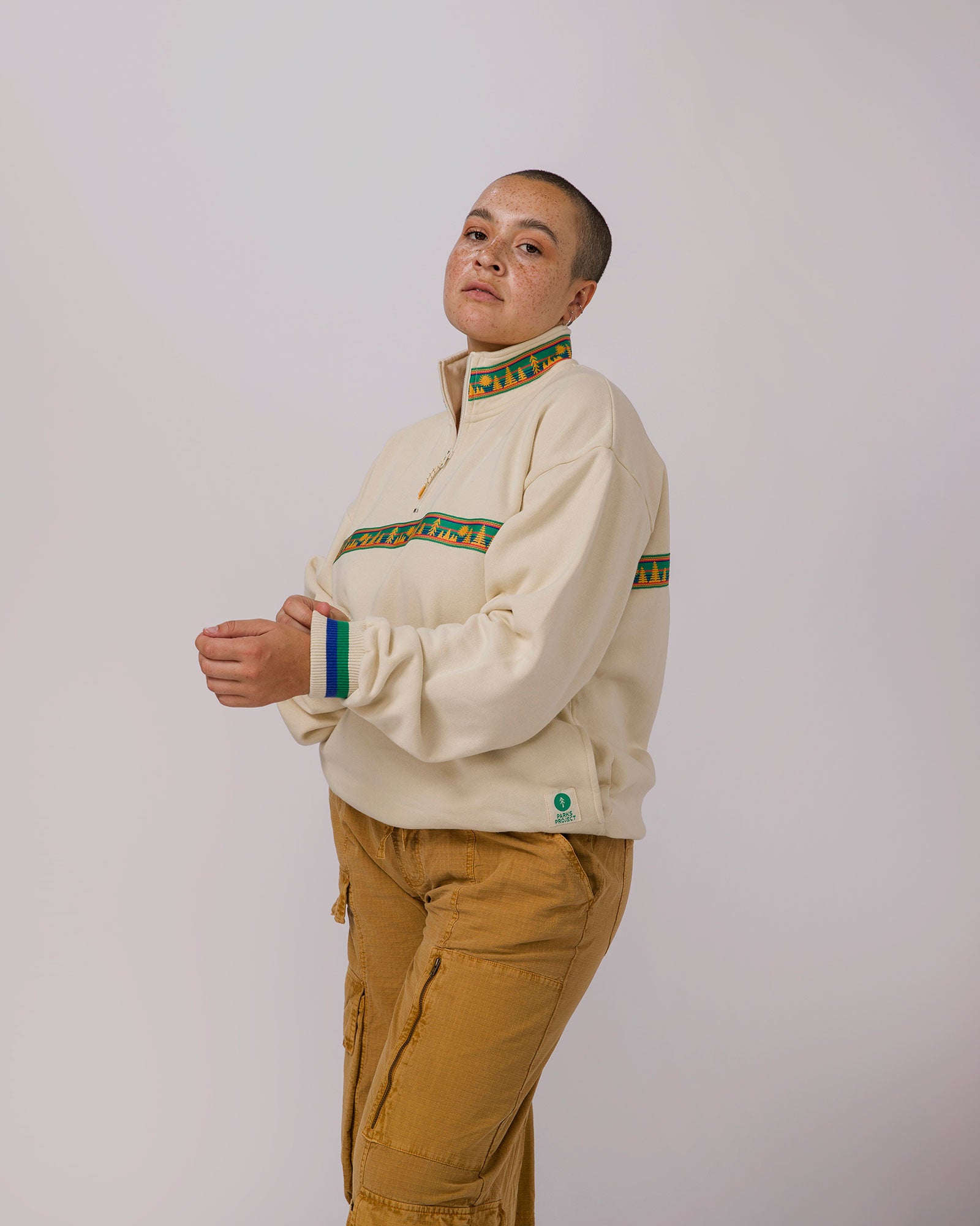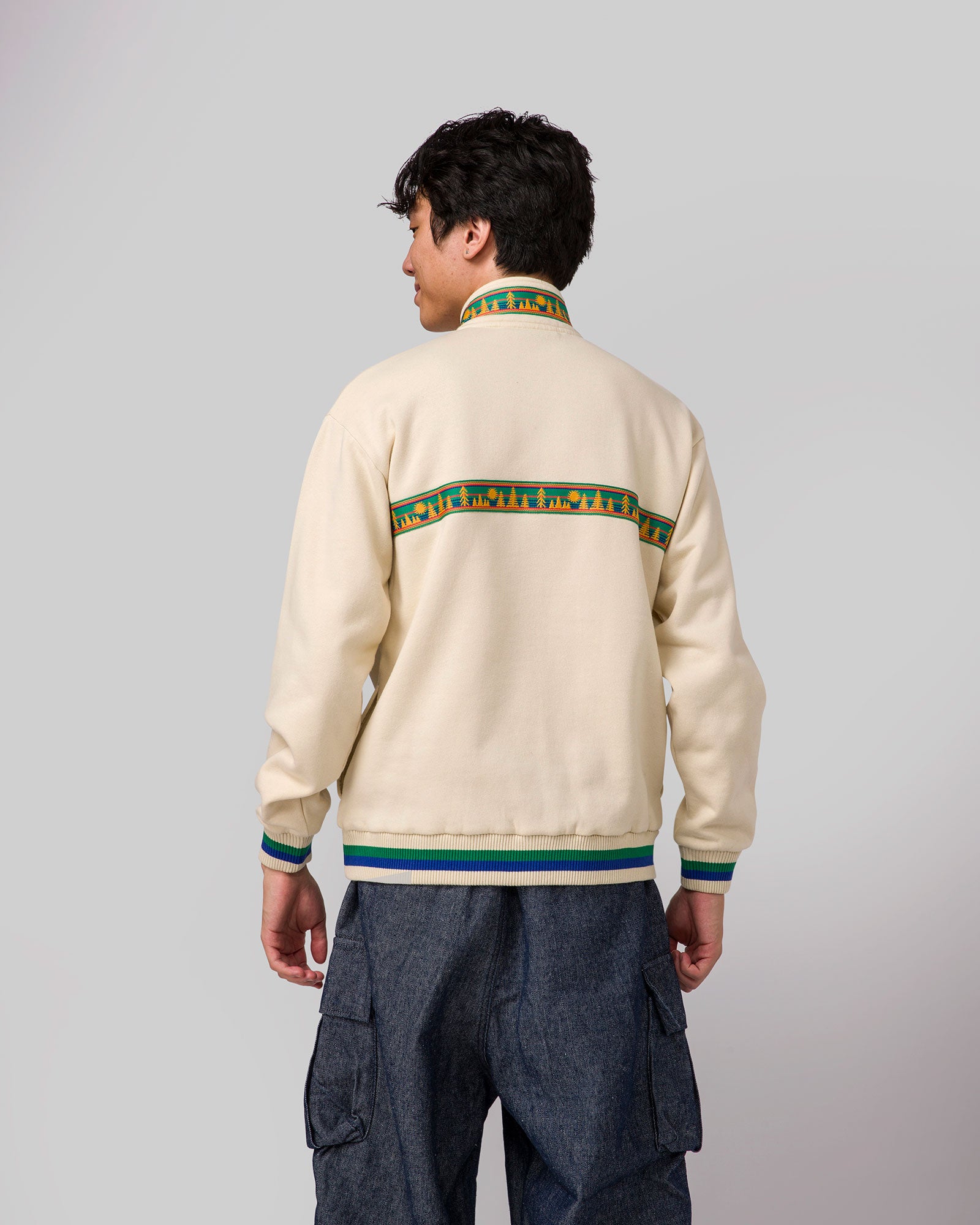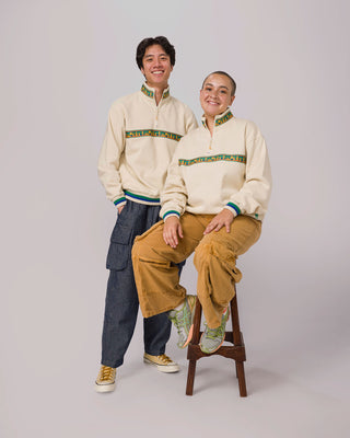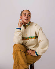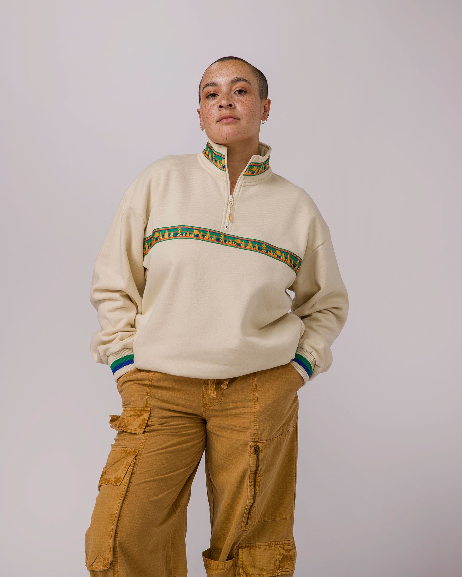 Our new quarter zip fleece is tailored for your adventures. Featuring a quarter zip with a string pull, ribbing on the sleeve cuff and bottom, and stylish jacquard taping across the front chest. With two convenient side pockets, it's your go-to for exploring nature’s beauty.